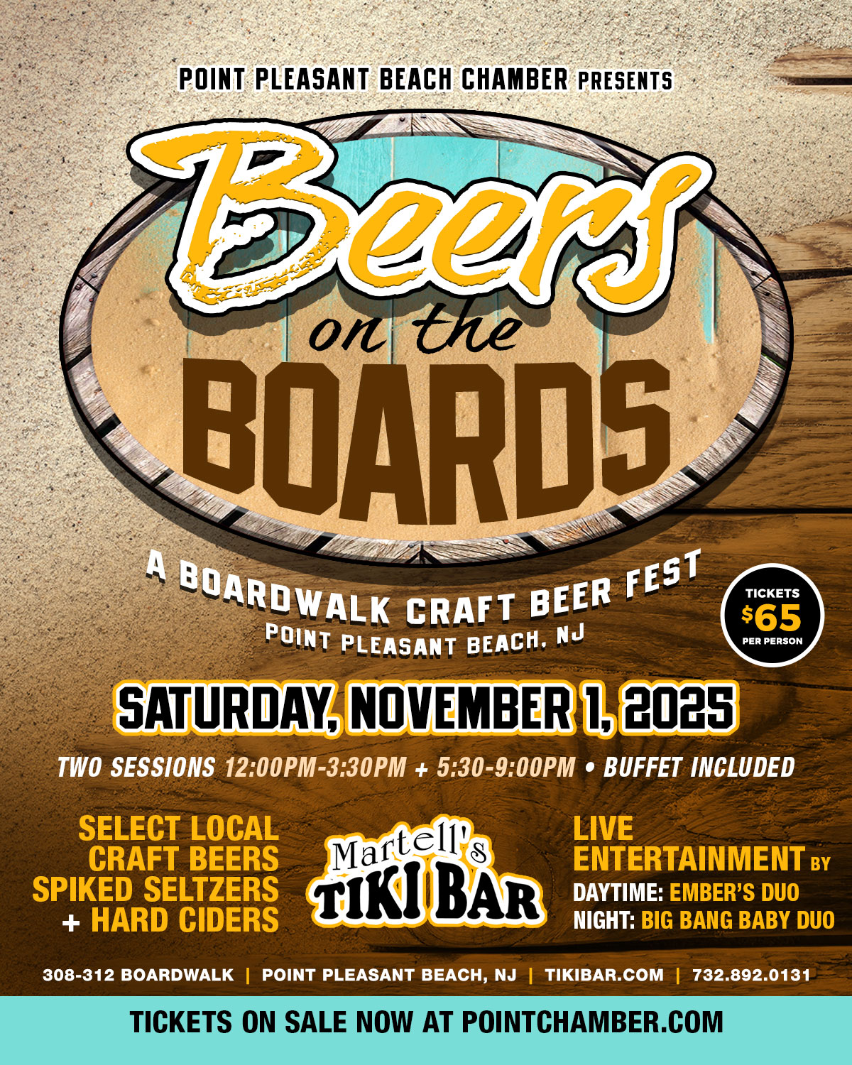 Martell’s Tiki Bar will be hosting Point Pleasant Beach Chamber’s Annual Beers on the Boards on Saturday, November 1, 2025. The craft beer festival will feature many local breweries including some of your favorites!